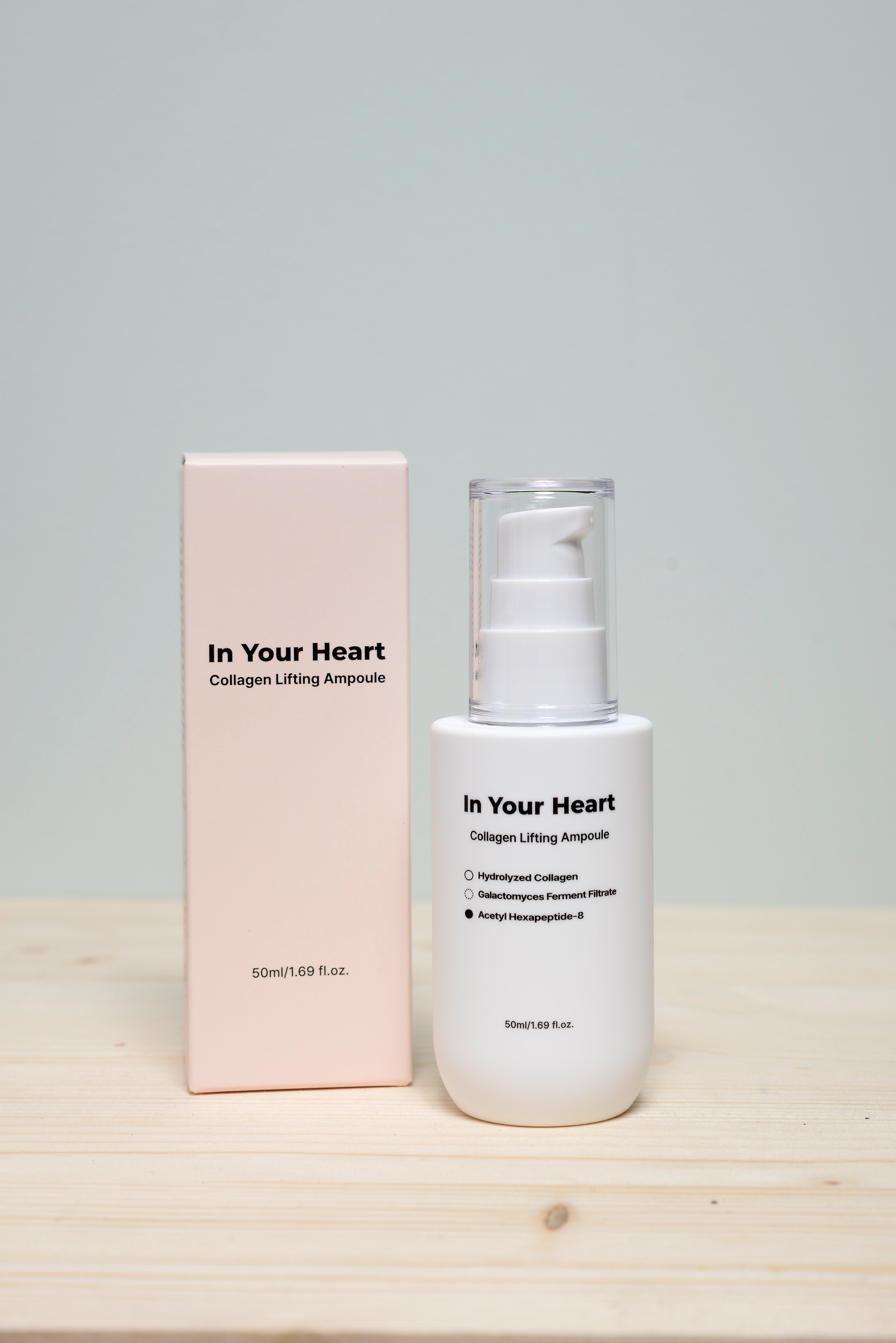 IN YOUR HEART Collagen Lifting Ampoule 50ml: prodotto perfetto per un'azione anti-età. Siero con peptidi di collagene idrolizzato, acido ialuronico 5x e Acetyl Hexapeptide-8.