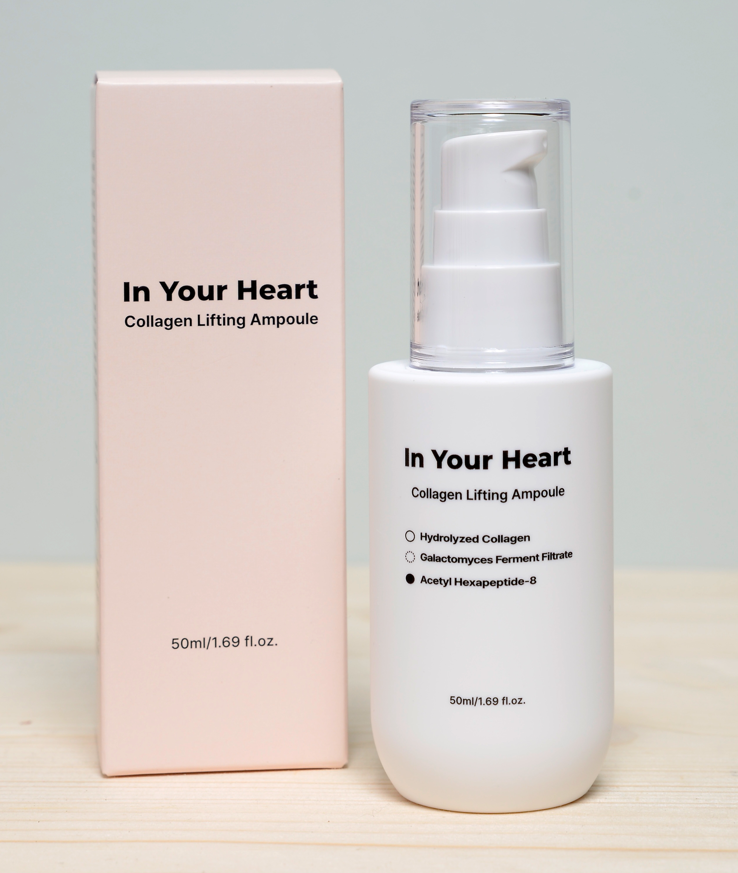IN YOUR HEART Collagen Lifting Ampoule 50ml: prodotto perfetto per un'azione anti-età. Siero con peptidi di collagene idrolizzato, acido ialuronico 5x e Acetyl Hexapeptide-8.